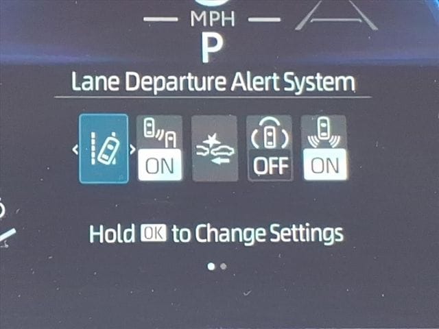 - Lane departure: Lane Departure Alert (LDA) w/Steering Assist active